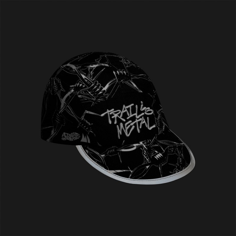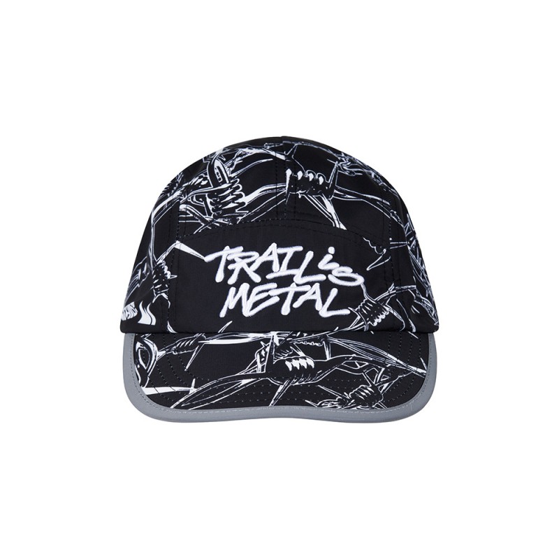 Questo prodotto potrebbe essere escluso da determinati Codici Sconto e Promozioni. Cappello con chiusura regolabile, tesa curva imbottita flessibile, 5 pannelli stampati. Logo "Trail is Metal" RICAMATO in rilievo. Bordo della tesa in materiale Riflettente. Banda tergi-sudore interna. Compattabile e lavabile in lavatrice. Adatto a tutte le taglie.